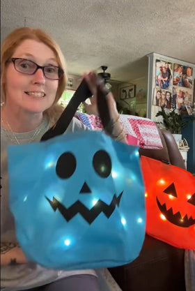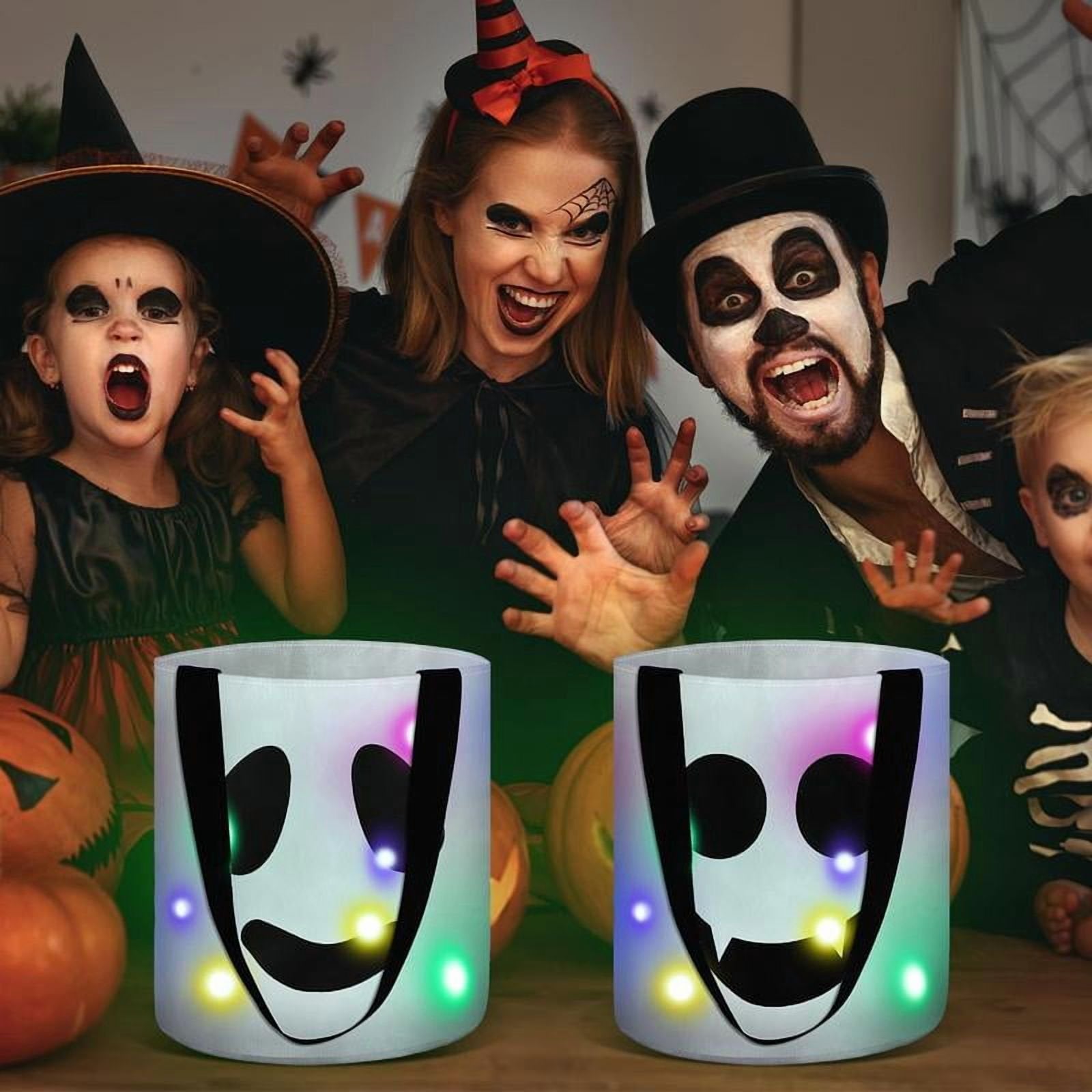 Spacious, reusable, and glowing in the dark, these bags are perfect for trick-or-treating, party favors, or even holiday gift-giving. With a fun Halloween design and adjustable LED lights, they’ll make kids stand out while carrying all their favorite candies, chocolates, and surprises.