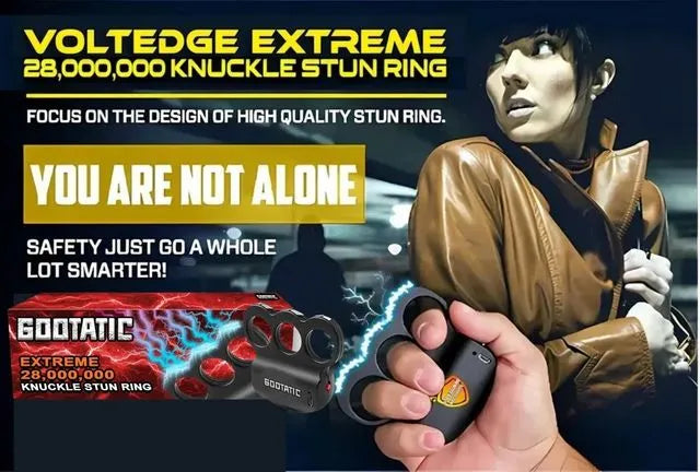 Stay one step ahead with the ultimate self-defense tool that fits in the palm of your hand! The GOOTATIC™ Suptruck Knuckle Stun Ring is small but fierce—delivering a shocking 28,000,000 volts of power in an ultra-compact design. Thanks to the innovative Squeeze-N-Stun™ Technology, it activates instantly with a simple grip—no fumbling, no delays.