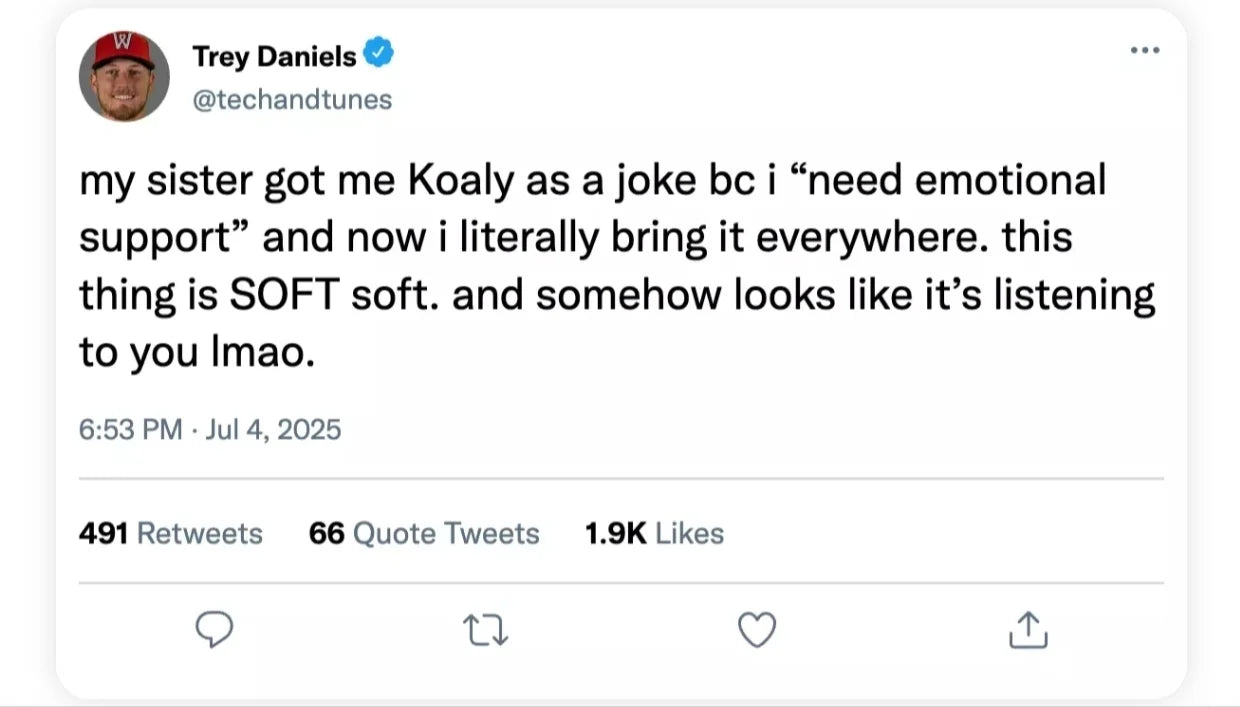 'I’m obsessed with this thing! Koaly looks adorable and feels even better. The moment I held it, everything felt calmer. It’s like having a little pocket of peace in my arms.'