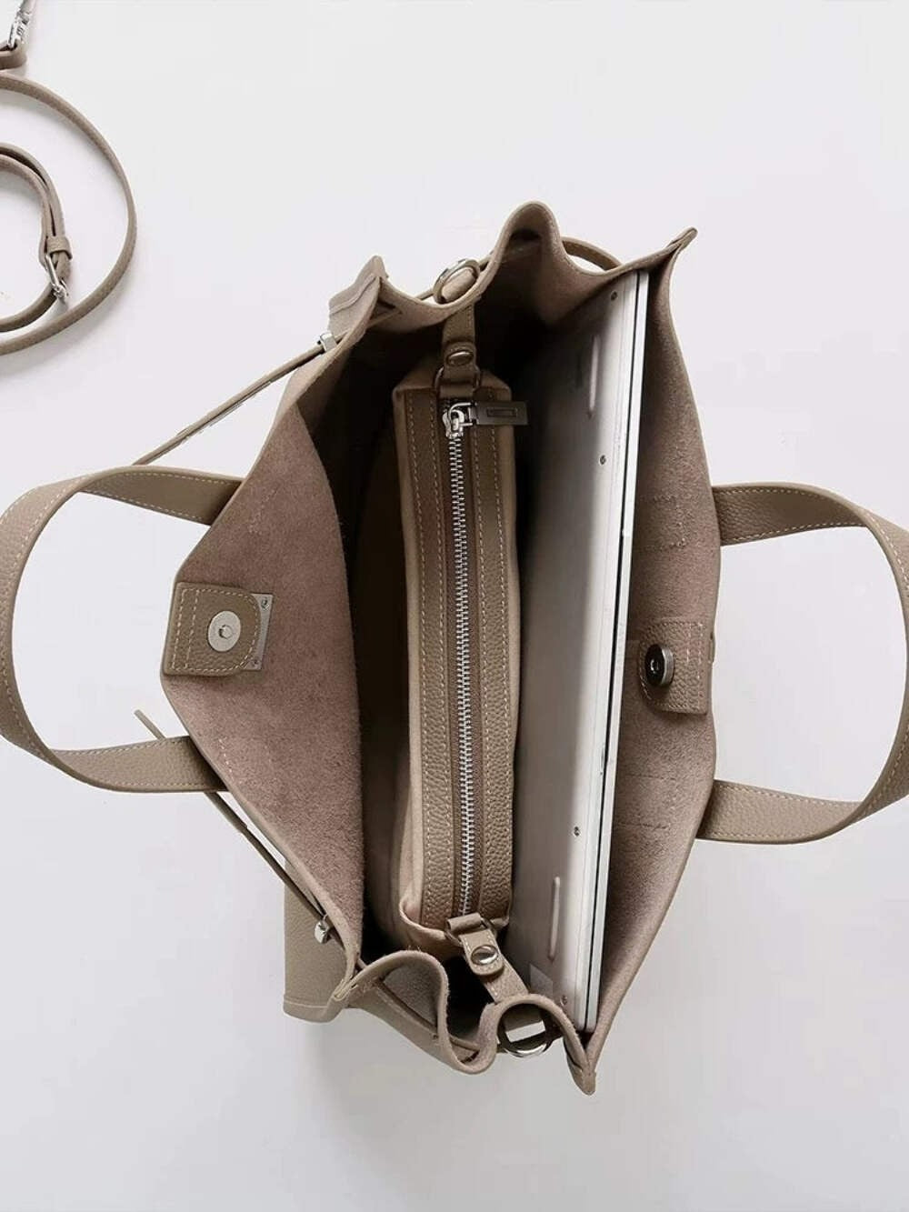 With ample space to carry your laptop, tablet, wallet, phone, and more, this bag transitions seamlessly from desk to dinner. The interior zipper pouch adds extra organization, while the wide opening and magnetic closure keep everything accessible yet secure.